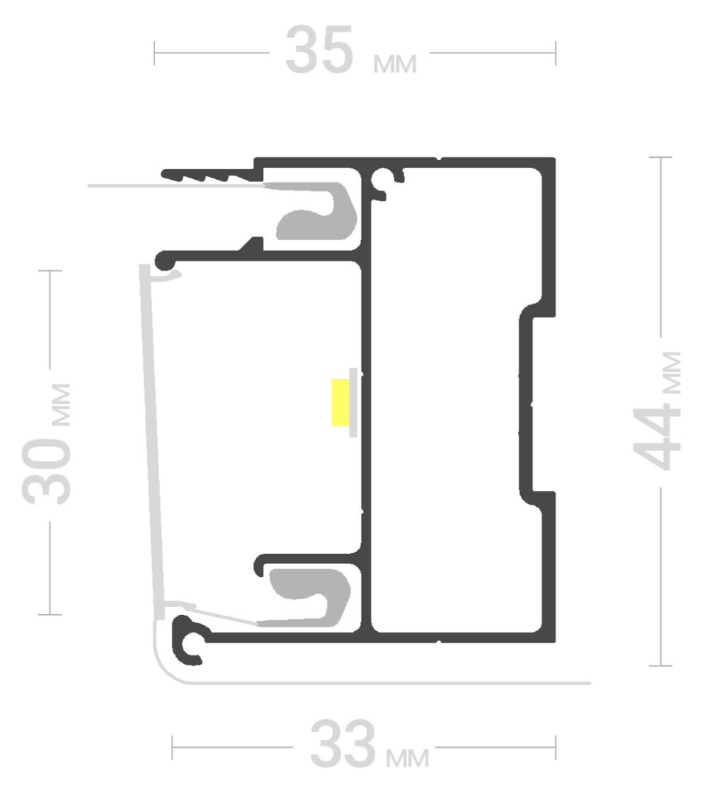 - Подходит для создания вертикальных световых переходов шириной 30 мм, а также различных конструкций, ниш, обхода сложных стен.