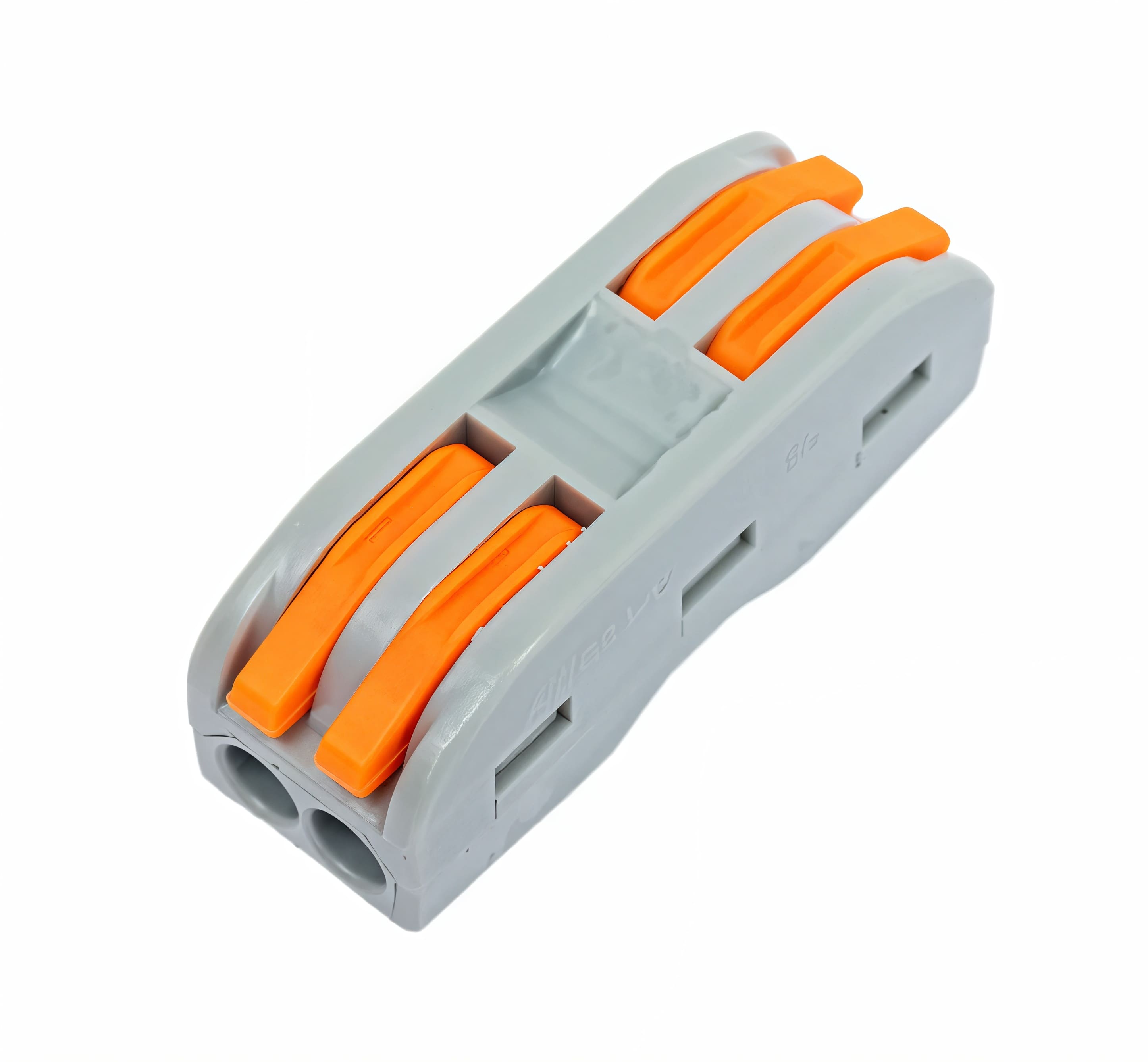 Клемма 2-х проводная двухсторонняя – электромонтажный аксессуар для бытового и промышленного применения. Может быть использована при построении электрических цепей любого целевого предназначения: осветительных, контрольных, силовых. С помощью клеммы появляется возможность быстрого и надежного соединения многожильных или одножильных проводов сечением до 4,0 мм2 одного или разного типа, из одинаковых либо отличающихся материалов. Изделие рассчитано на максимальное напряжение до 400 В и номинальный ток 32 А.