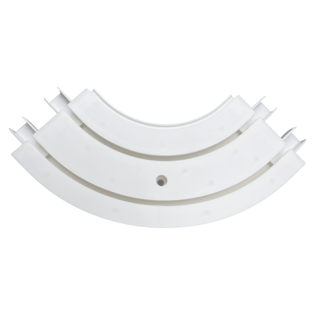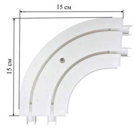 Пластиковый двухрядный поворот для потолочной пластиковой шины предназначен для эркерных окон.