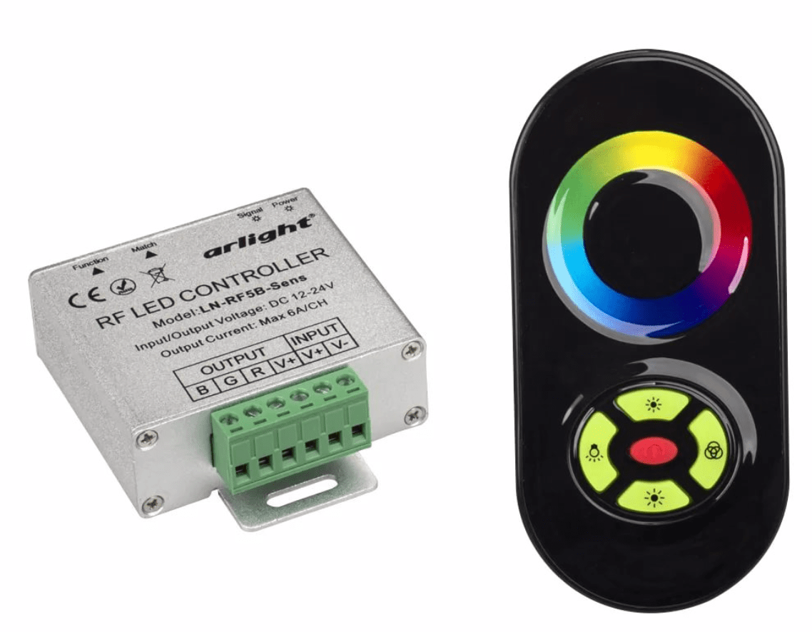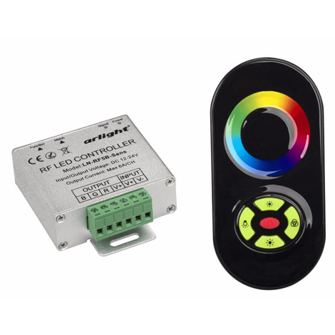 Контроллер предназначен для светодиодной ленты RGB мультицвет. С помощью контроллера можно дистанционно управлять яркостью и цветовой гаммой. Управление осуществляется с помощью пульта дистанционного управления по инфракрасному или радио каналам. Тип управления кнопочный. Диапазон работы пульта 15м.