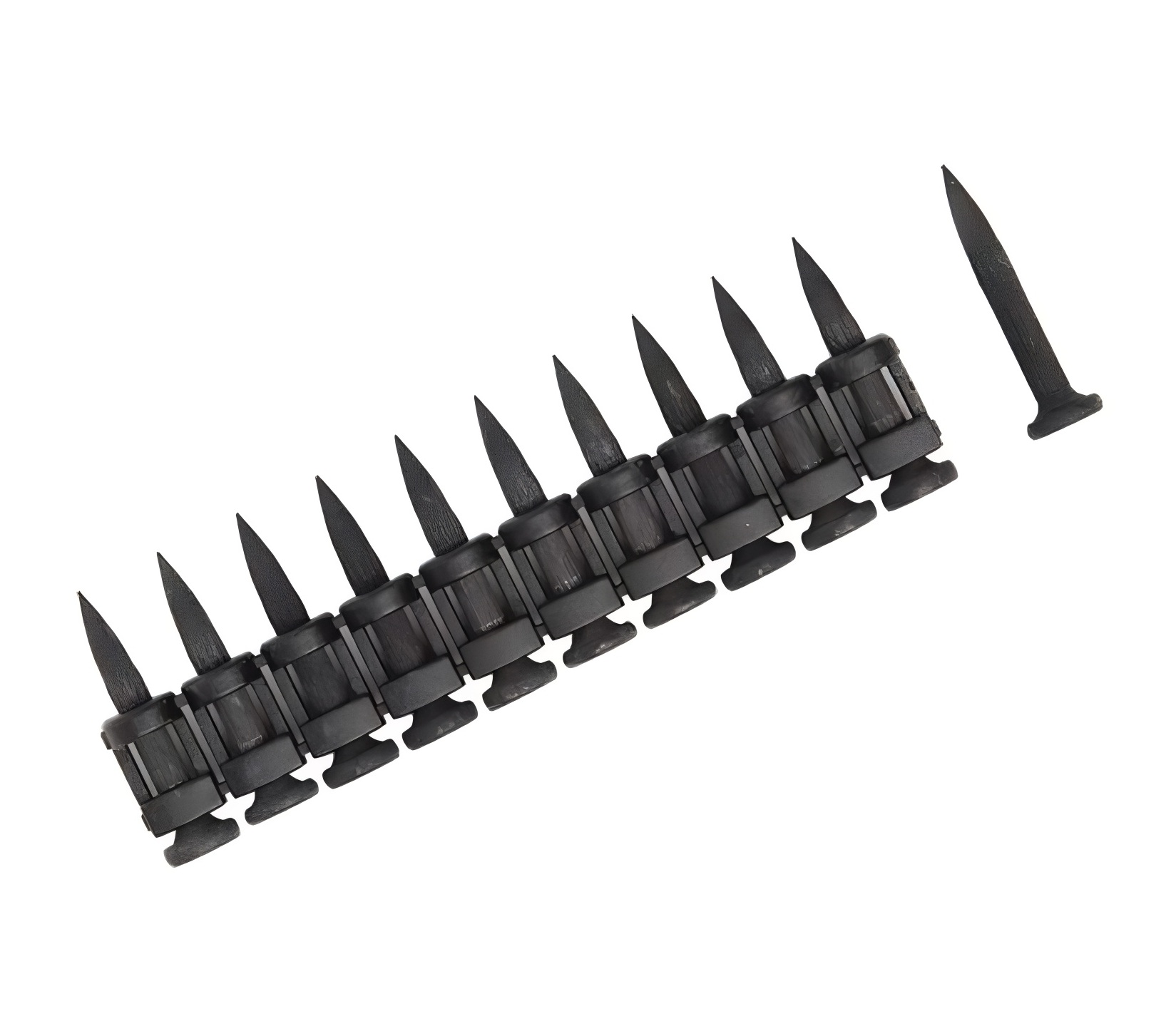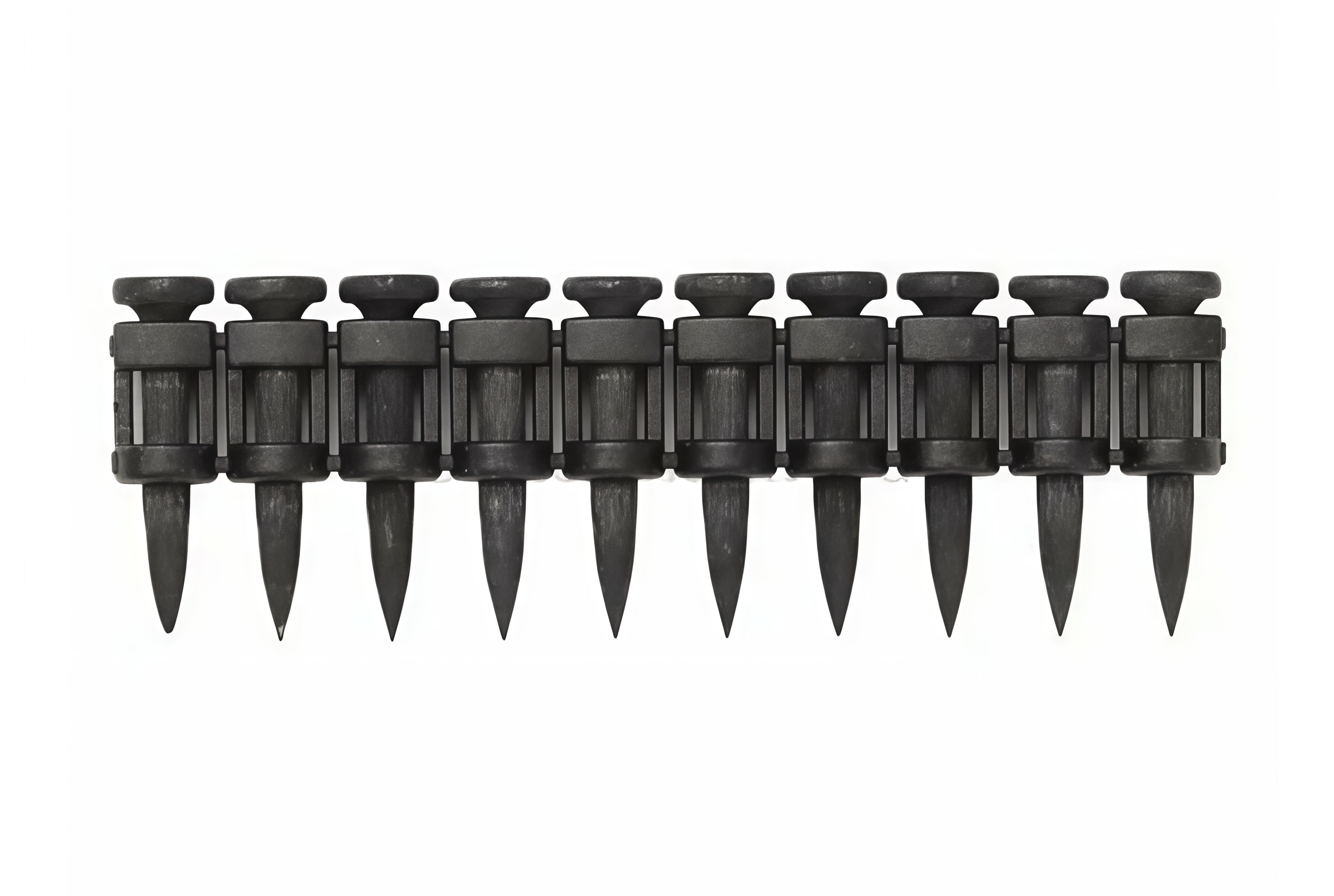 Усиленные гвозди для монтажного пистолета 38х3 мм изготовлены из стали марки СТ-60, обработаны механической гальванизацией. Используются для суперпрочных монолитных конструкций из бетона M350 и металлических швеллеров. Гвозди выполнены в форме пули, с плавным утолщением материала от острия к шляпке гвоздя. Такая форма гвоздя достигается путем прокатки наконечника гвоздя в сдавливающих роликах. Это позволяет уплотнить металл в зоне, где располагается острие.