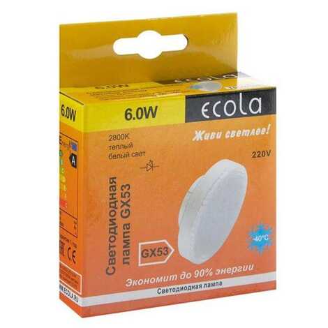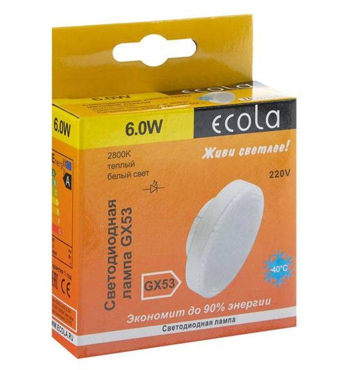 Лампа светодиодная таблетка с цоколем GX53 мощностью 6 Вт с цветовой температурой 2800 К (теплый белый свет).