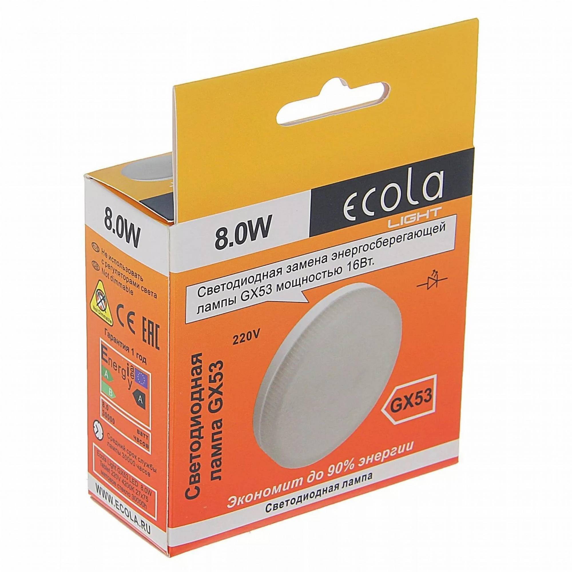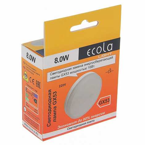 Светодиодная лампа Ecola Light GX53 LED 8,0W Tablet 220V 4200K 27x75 матовое стекло 30000h