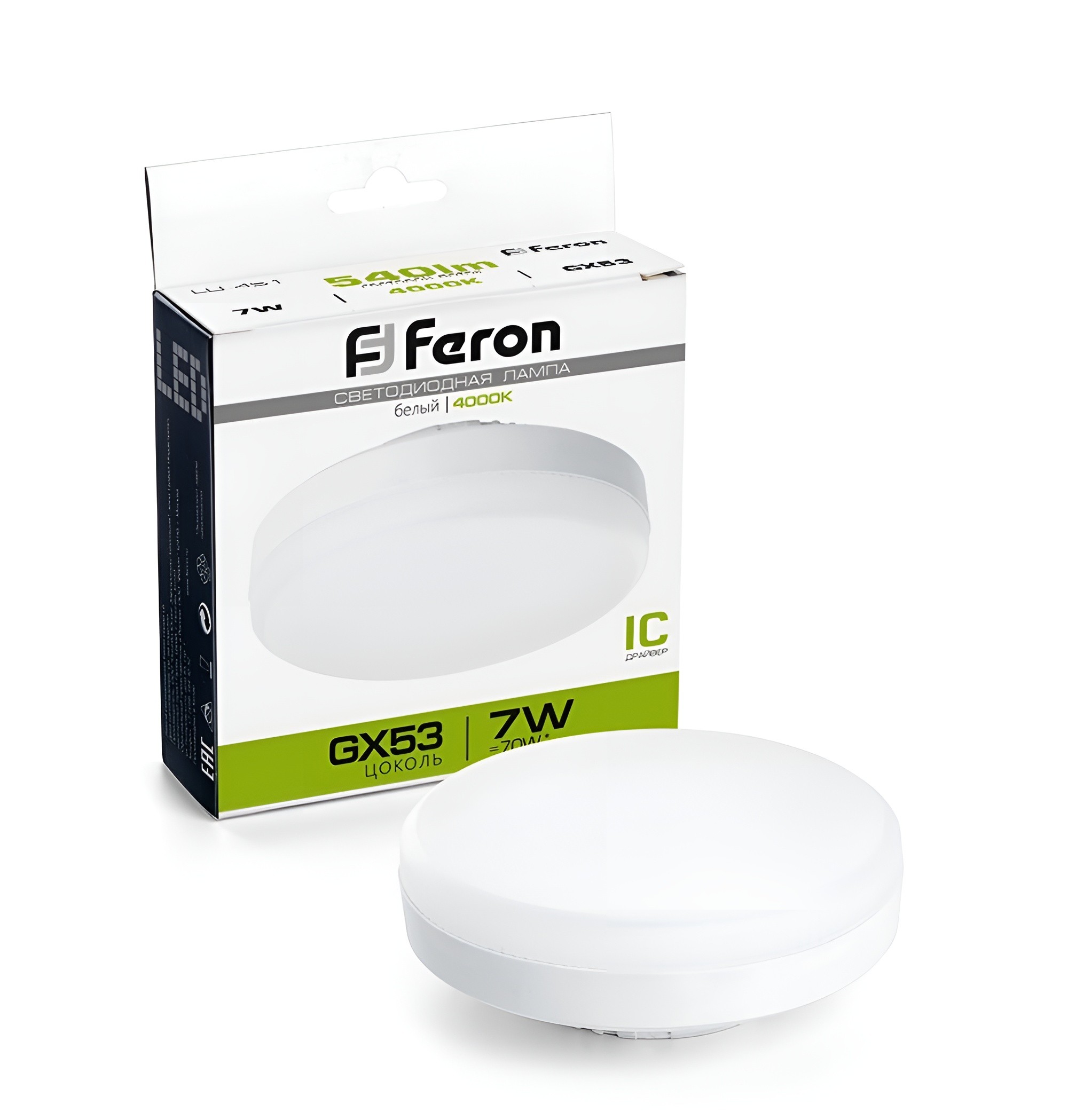Лампа cветодиодная, (7W) GX53 4000K, FERON LB-451