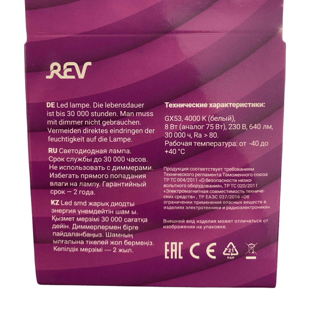 Лампа GX53 REV 8W 4000К