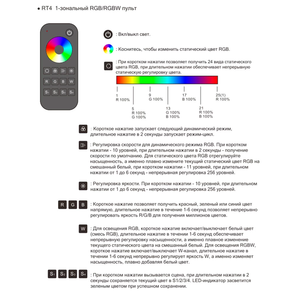 ● Независимая функция диммирования каждого R,G,B,W канала для достижения миллионов цветов.