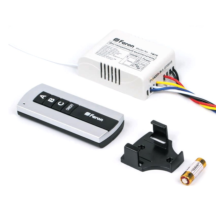 Дистанционный выключатель ТМ76 имеет 3 канала, на каждый из которых можно подключить только часть осветительных приборов в помещении и включать эти части, с помощью пульта раздельно. Либо возможно подключить все каналы для всего освещения. Большой запас мощности на каждом канале, позволяет подключать мощные и многоламповые осветительные приборы.
