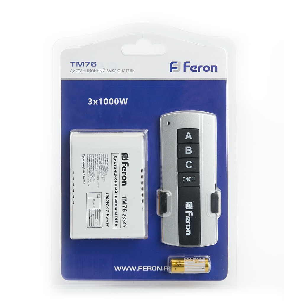 Выключатель (Пульт) дистанционный 3-х канальный Feron 230V 1000w