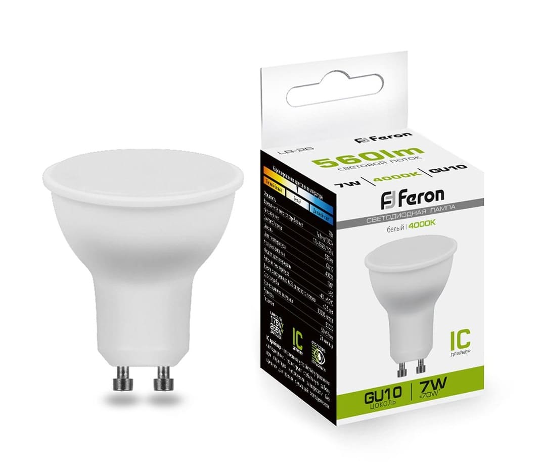 Лампа светодиодная, (7W) GU10 4000K FERON LB-560
