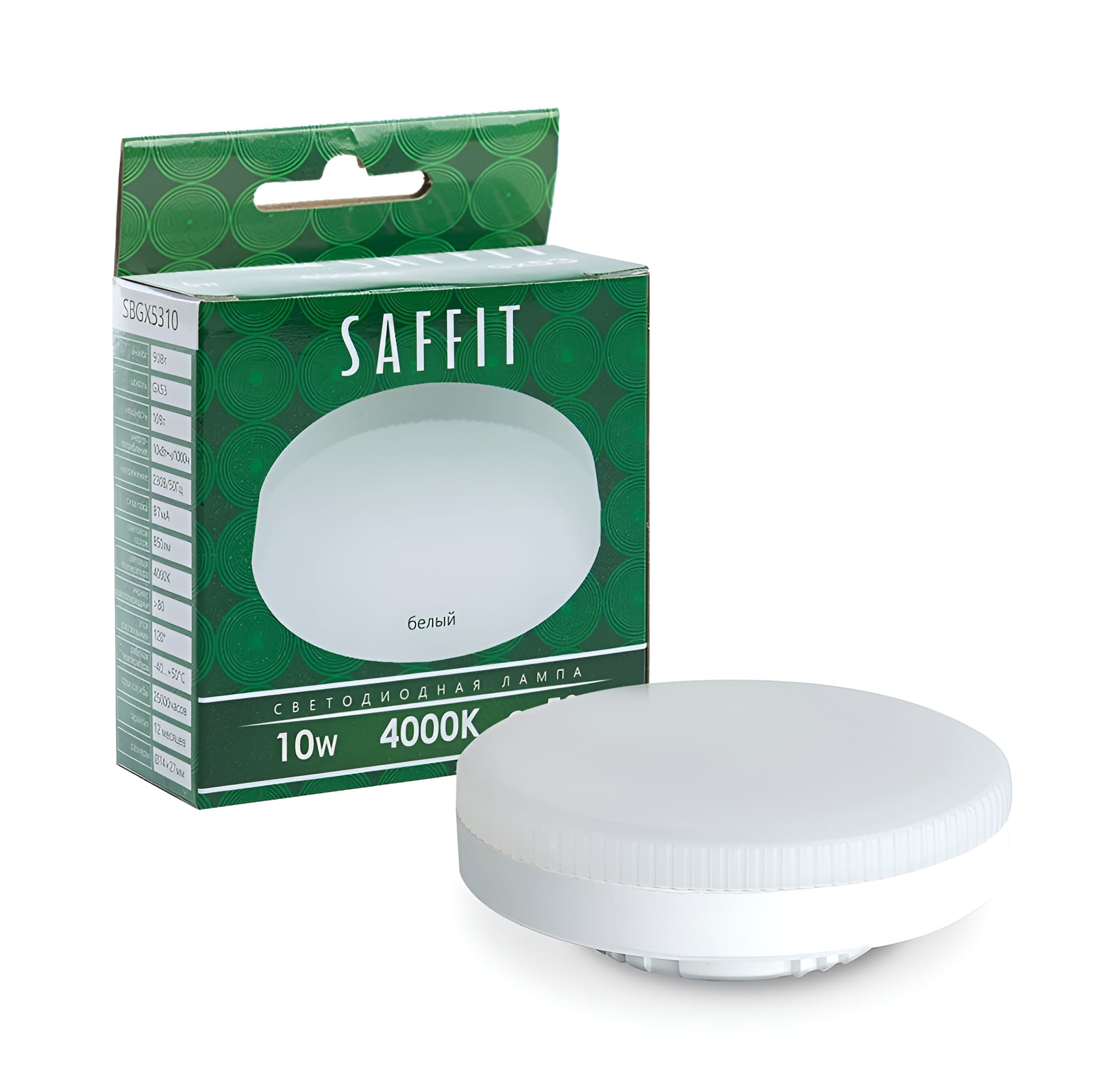 Лампа cветодиодная, (10W) GX53 4000K, SAFFIT SBGX5310
