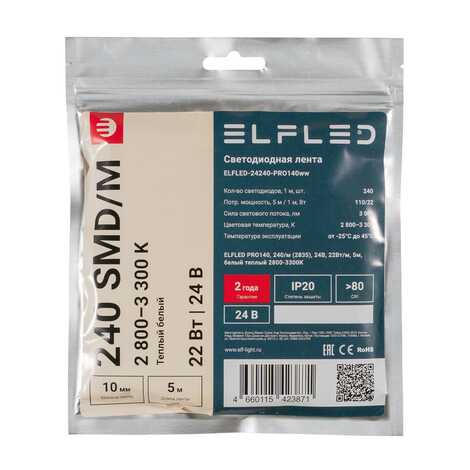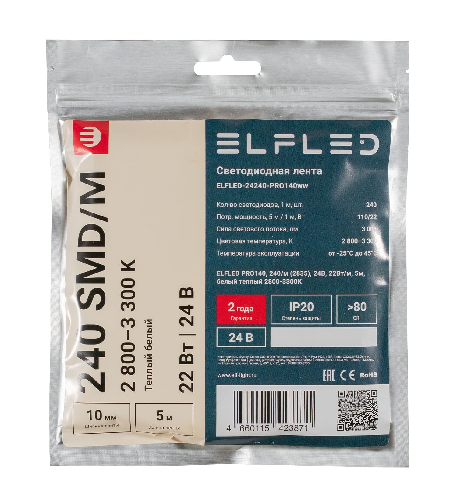 Светодиодная лента ELFLED PRO140 22w /240 точек/2800-3300K/24 V