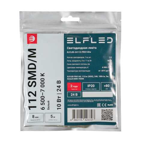 Светодиодная лента ELFLED PRO140 10w /112 точек/6500-7000K/24 V