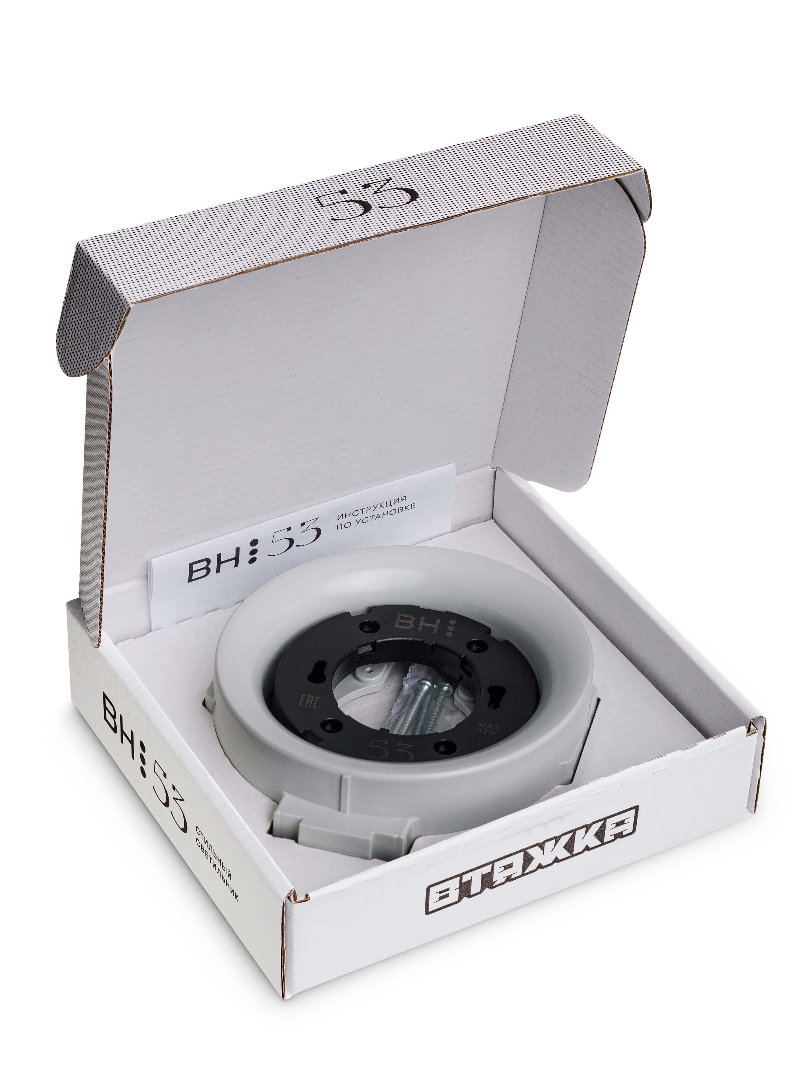 Монтаж занимает пару минут и не требует дополнительных закладных. Рекомендуется использовать лампы с цоколем GX53 мощностью до 12 Вт.