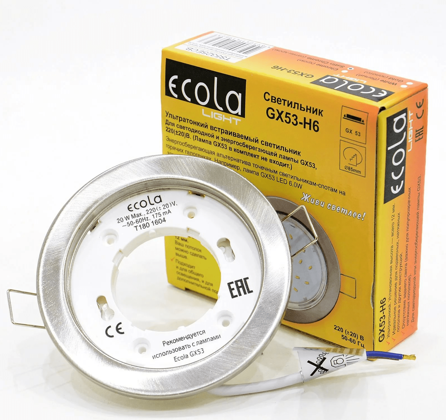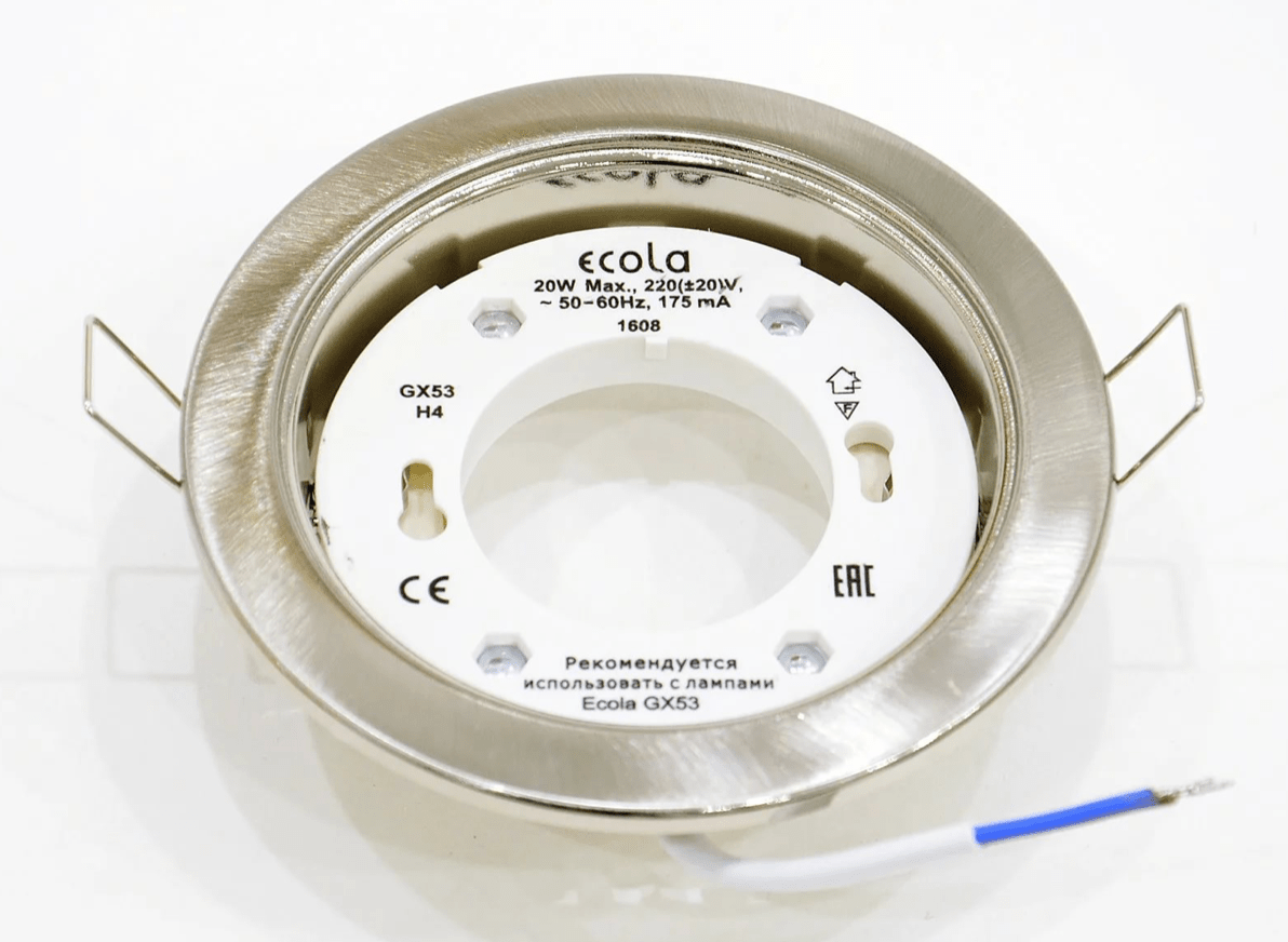 Светильник GX53 H4 сатин-хром Экола предназначен для освещения жилых и общественных помещений, а также для индивидуальной подсветки различных объектов интерьера. Это идеальное решение для дизайнерских подвесных и натяжных потолков. Светильник является альтернативой точечным галогенным светильникам.
