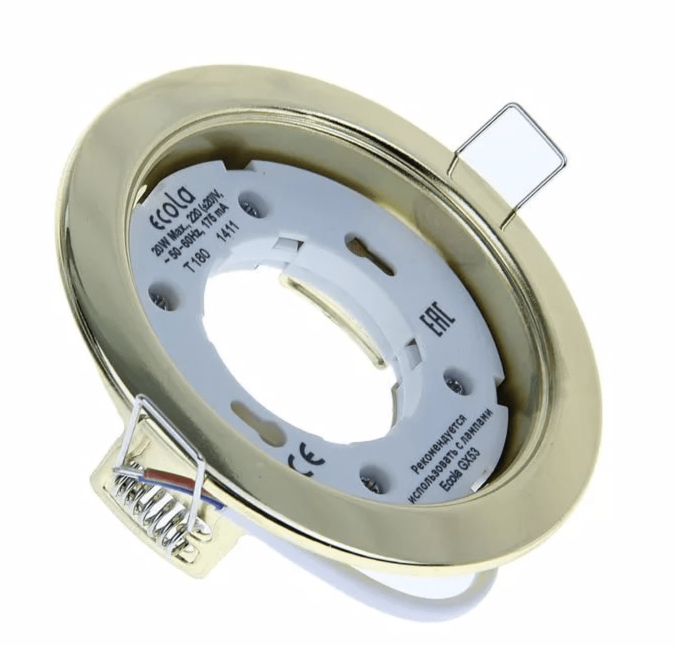 Светильники GX53 являются самым удачным вариантом для натяжных и подвесных потолков. Это идеальная альтернатива светильникам-спотам на горячих галогенках. Простая замена ламп, светильник не нужно вынимать из потолка. До 10 раз меньше энергопотребление и тепловыделение (светильник почти не нагревается). Отсутствует риск прожогов в натяжных потолках. Можно устанавливать в пластиковую или деревянную поверхность без дополнительной термоизоляции.