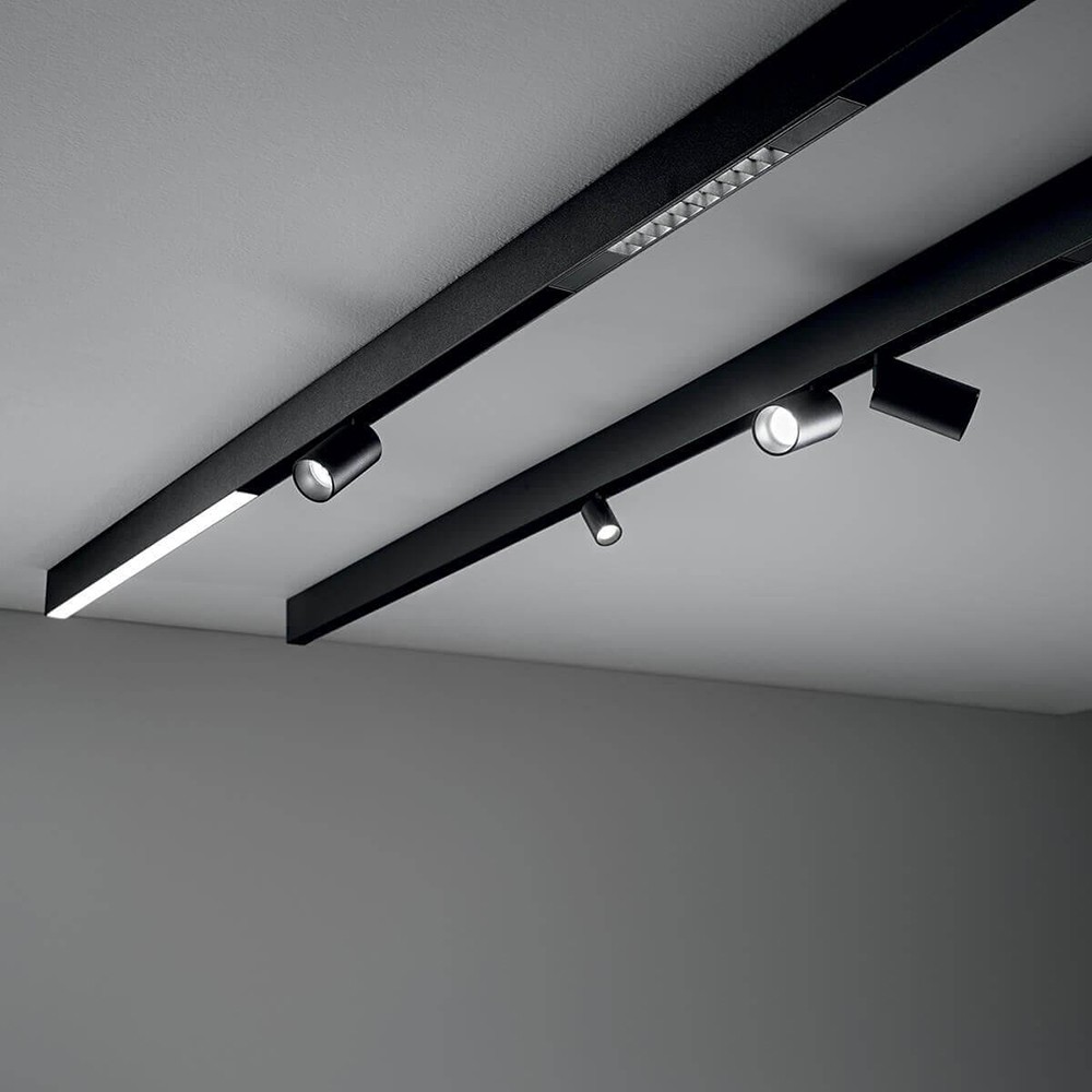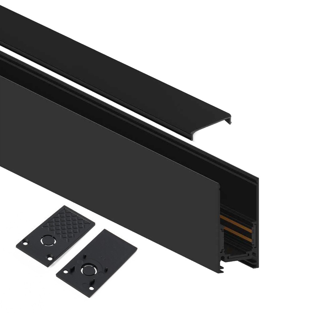 Шинопровод CABM1000 длиной 2 м обеспечивает гибкую и современную систему освещения для коммерческих и жилых пространств. Он изготовлен из прочного алюминиевого сплава и окрашен в матовый черный цвет, что обеспечивает элегантный и незаметный вид.
