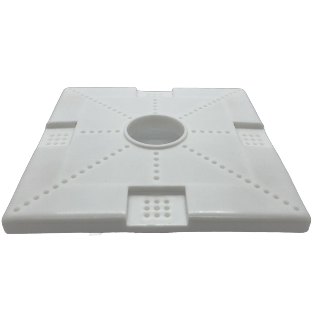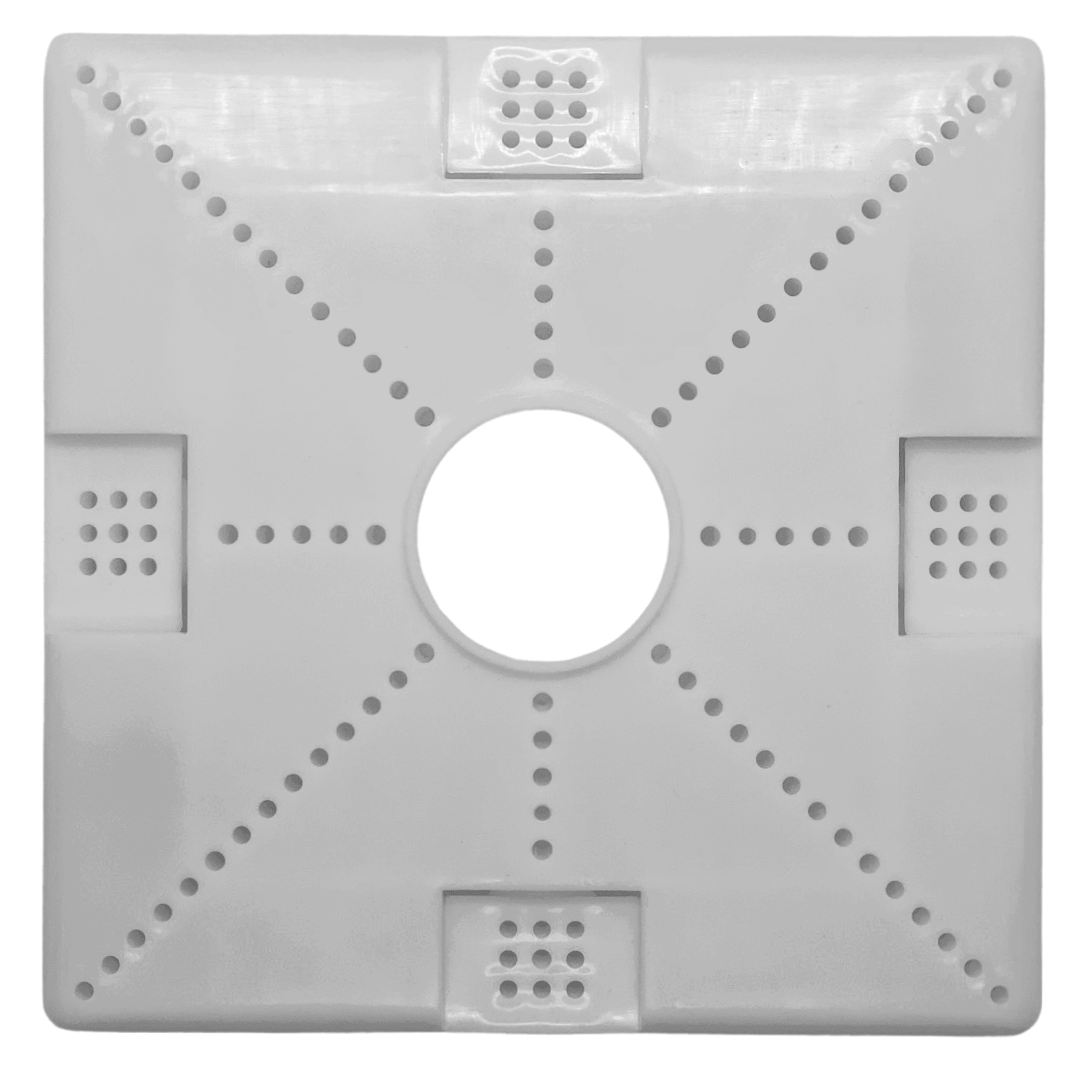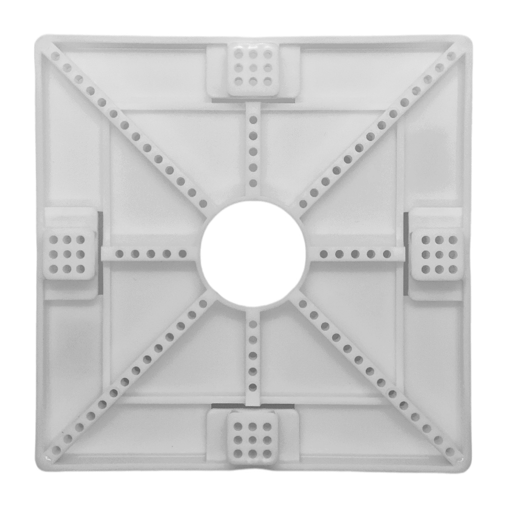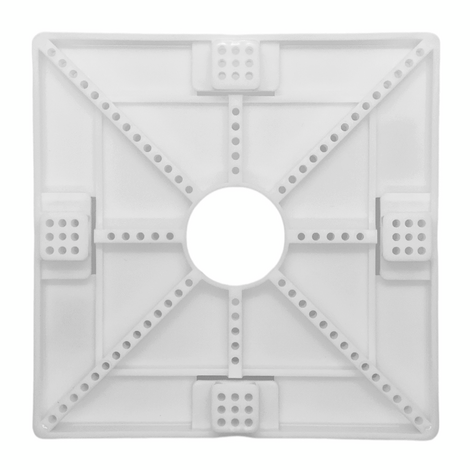 Данное изделие предназначено для крепления люстр при монтаже натяжных потолков. Крепление платформы к основному потолку осуществляется по классической схеме на четыре точки опоры. Для крепления крестовины / планки / люстры на лицевой поверхности платформы нанесены отверстия под саморезов. Применение данных отверстий позволяет совместить их с присоединительными элементами люстр большинства производителей. Конструкция платформы позволяет закрепить к ней оцинкованный подвес как с внутренней, так и с внешней стороны.