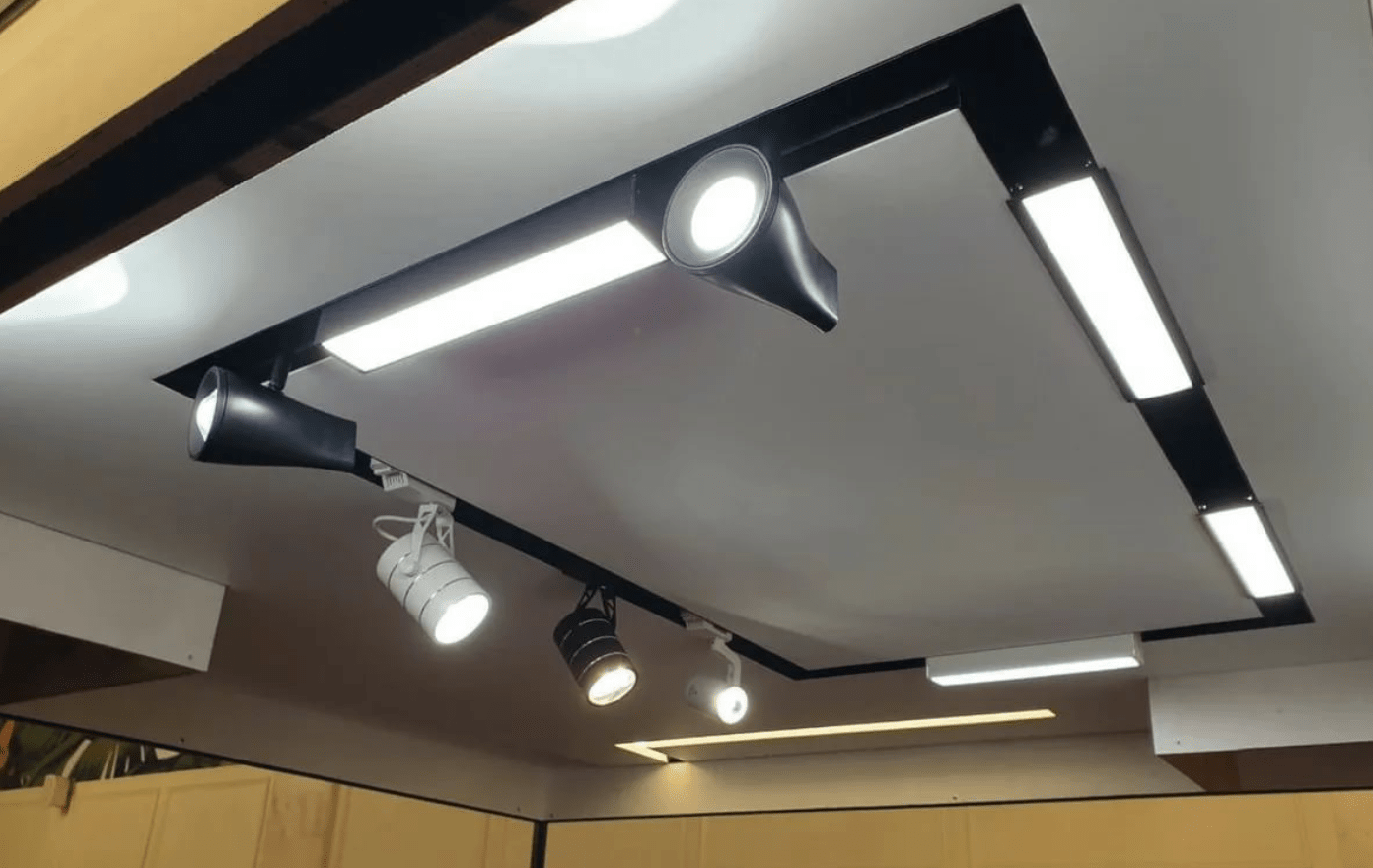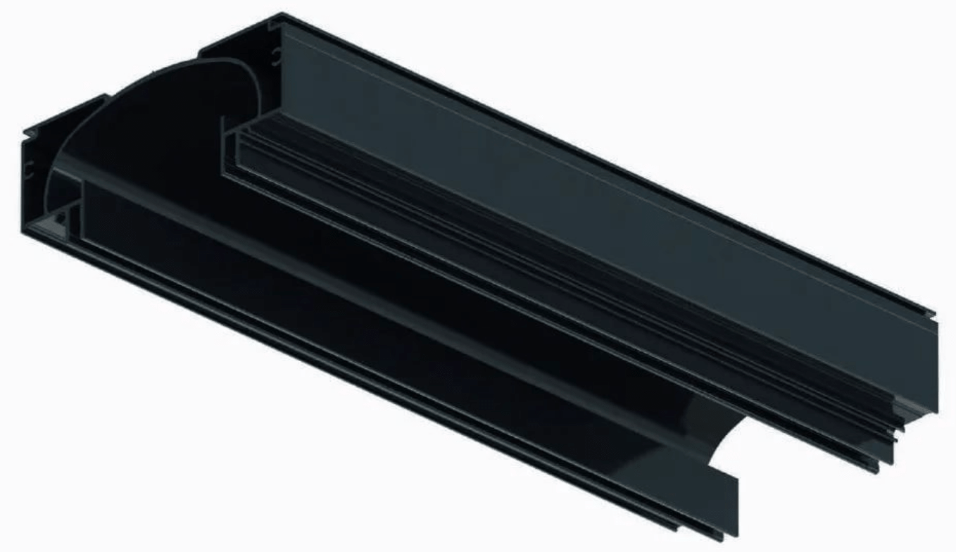 - Чёрный профиль предназначен для размещения в нём дополнительного оборудования, такого как трек-системы, светильники L31/L61 или точечные.