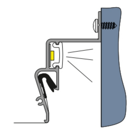 - использование светорассеивающей вставки обеспечивает расширение распространения света вдоль профиля с возможностью использования при монтаже на глянцевых и отражающих поверхностях стенок;