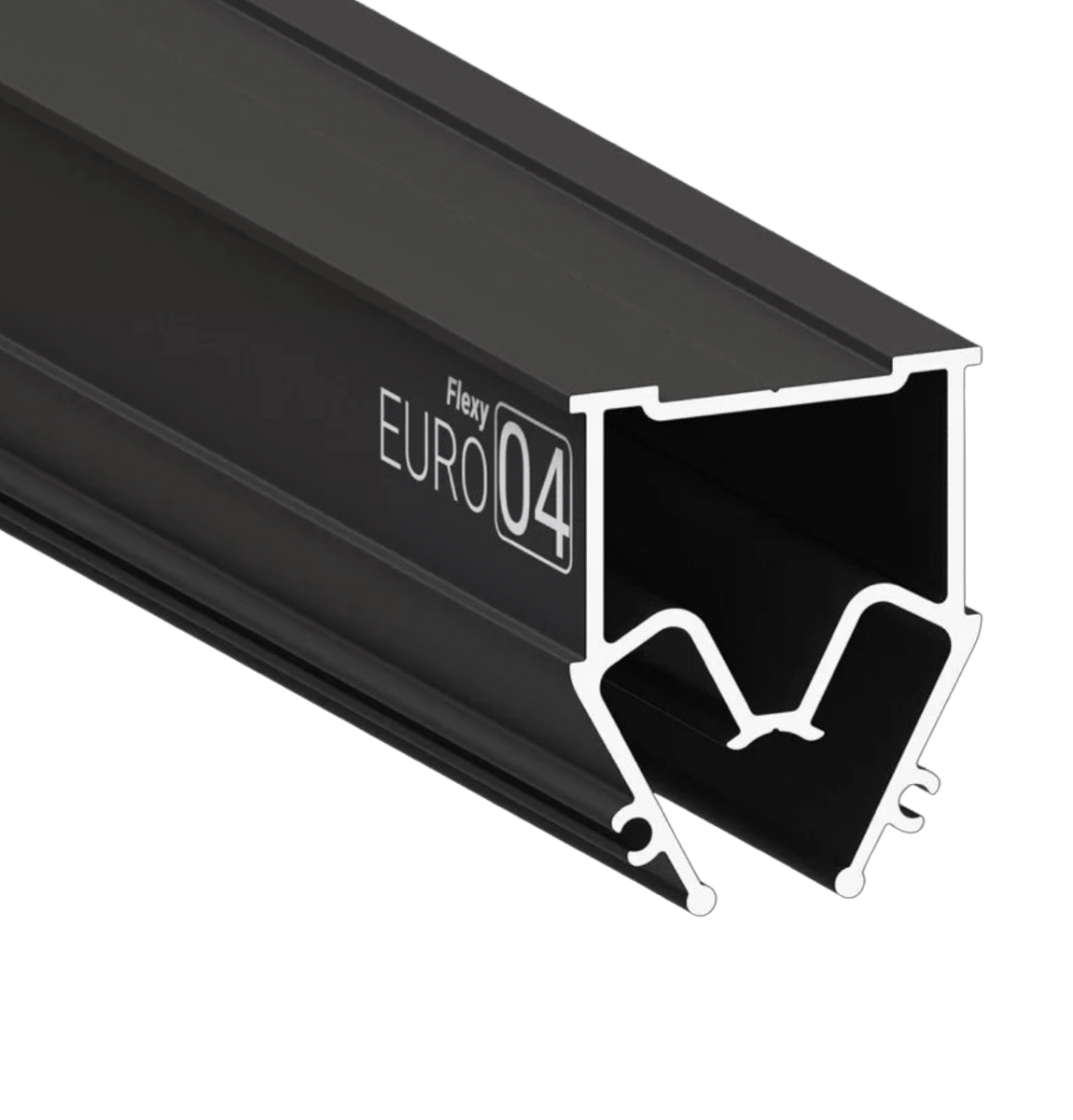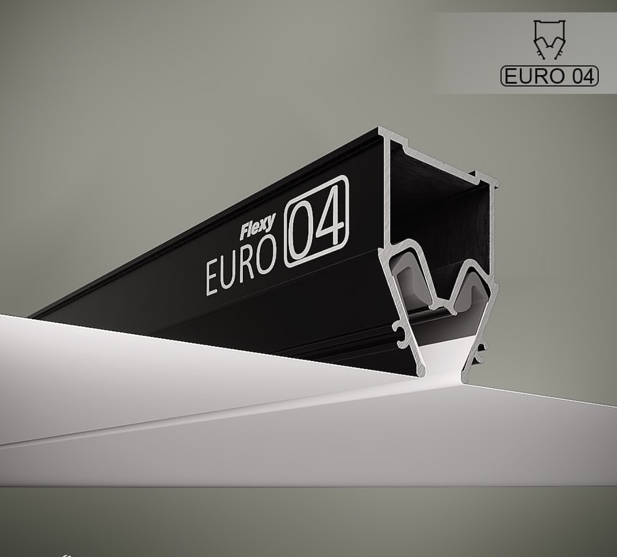 Разделительный профиль Flexy EURO 04 с теневым зазором для натяжных потолков с гарпунной системой крепления полотна. Используется для наклонных натяжных потолков на мансардах, либо для разделения поверхности полотна на несколько сегментов без использования разделительной вставки.