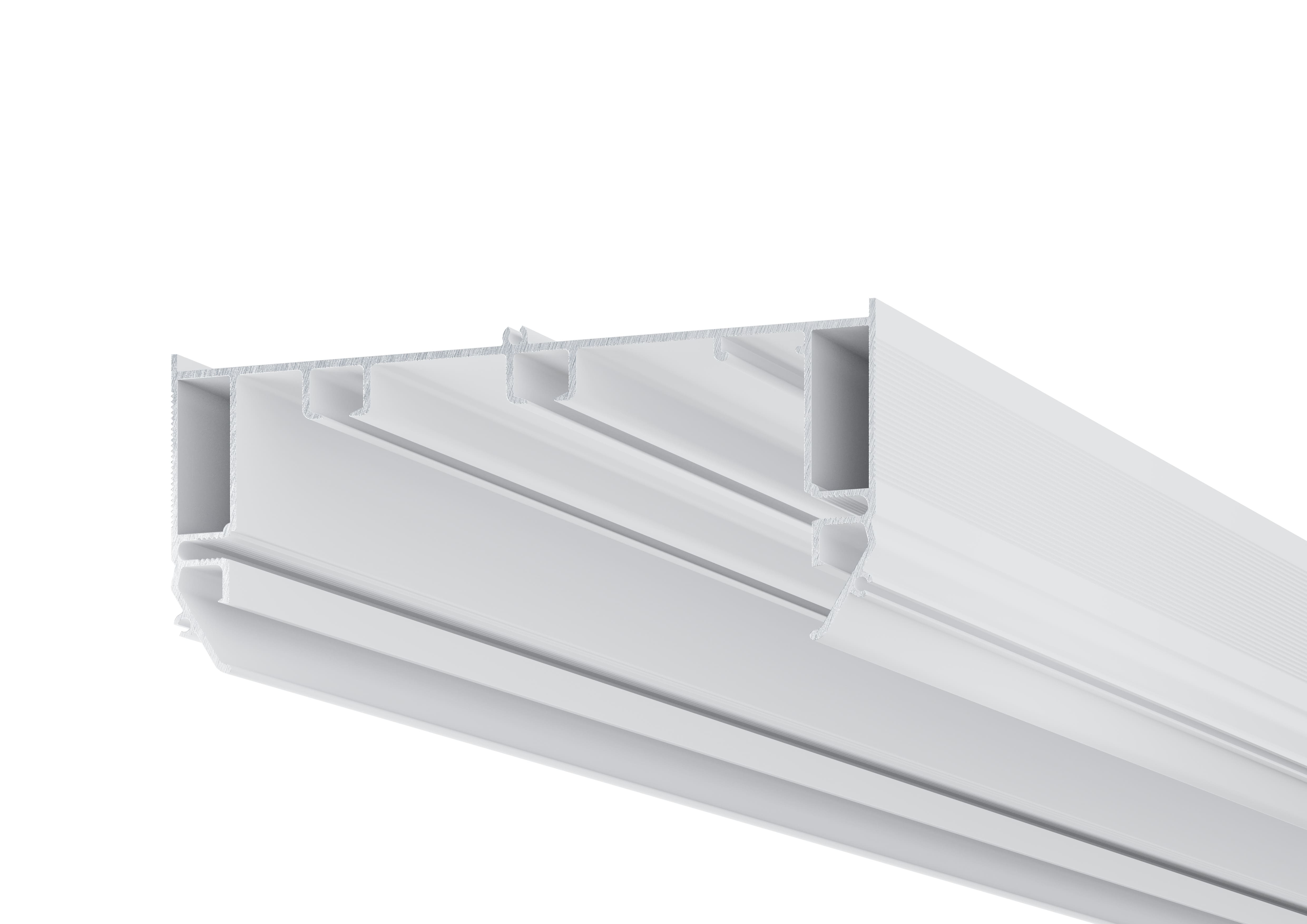 - карниз имеет широкий горизонтальный паз для LED-ленты, свет направлен вертикально вдоль шторы. С помощью установки светорассеивателя, световой поток становится более мягким и равномерным. Эффективная теплоотдача профиля позволяет увеличить срок службы светодиодной ленты.