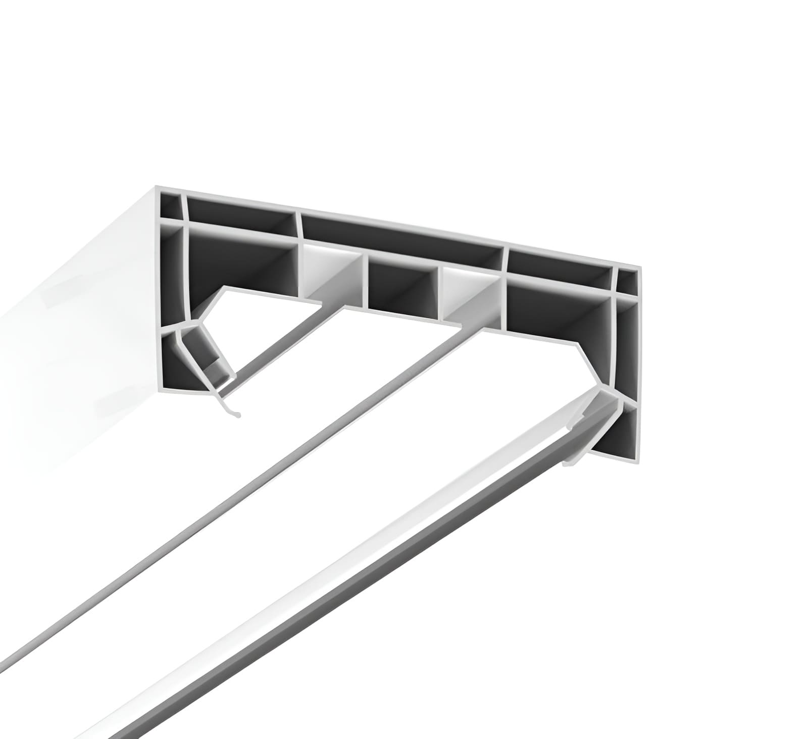 Профиль ПК 14 в исполнении ПВХ используется для изготовления ниш под карниз на потолках ПВХ.