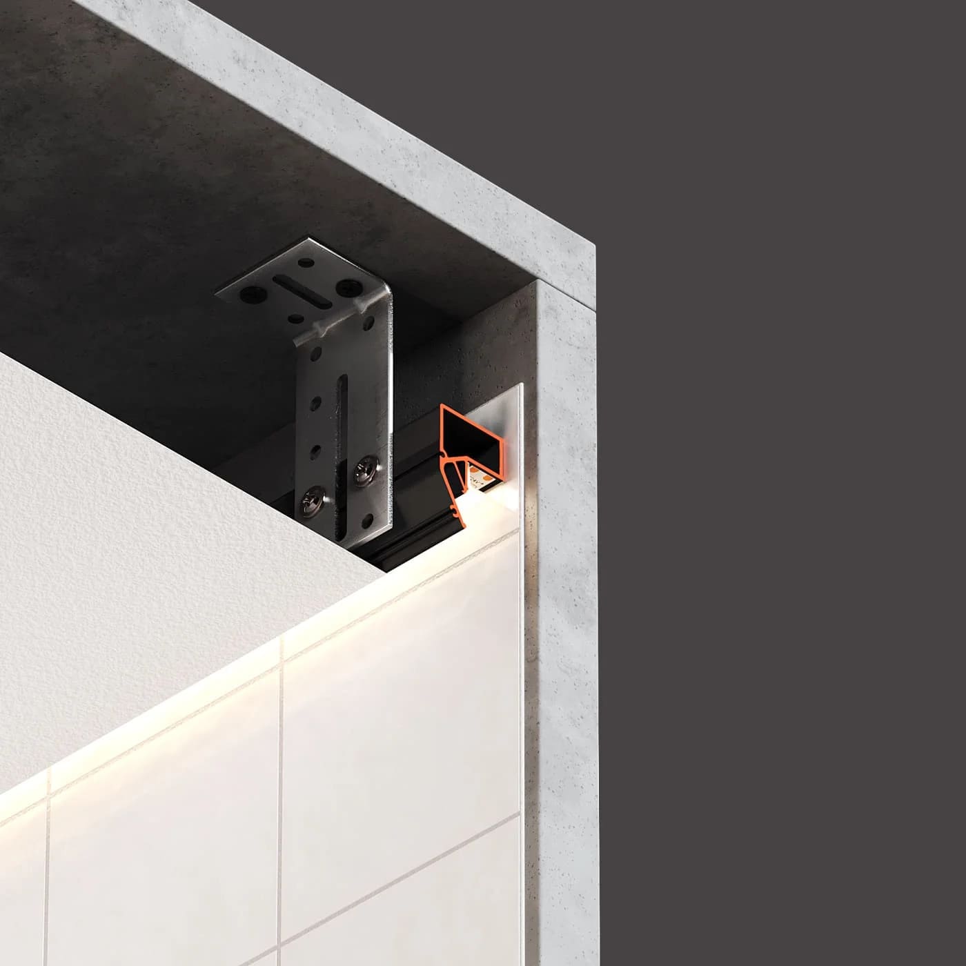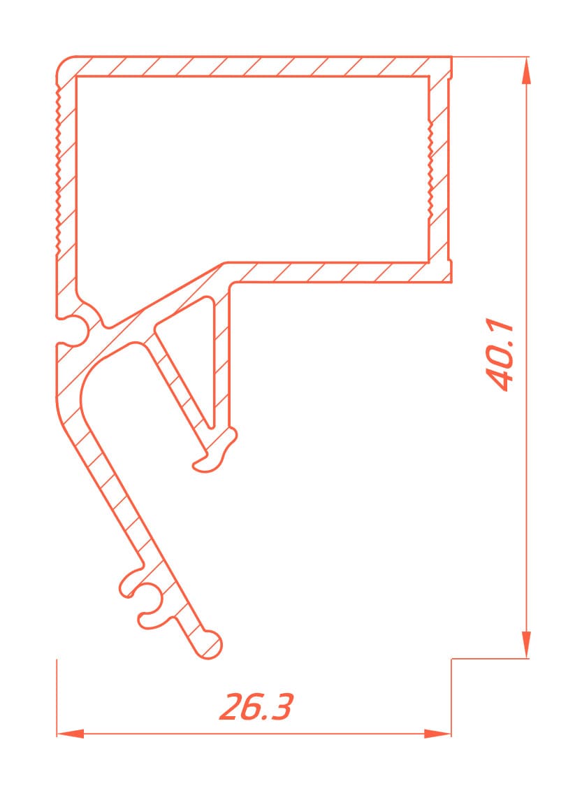 Потолочный парящий профиль для натяжных потолков с гарпунной системой крепления полотна. Оснащён полкой для размещения светодиодной ленты и предназначен для установки светорассеивающей вставки.