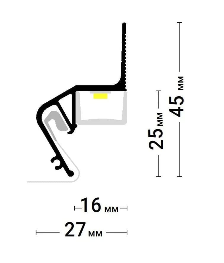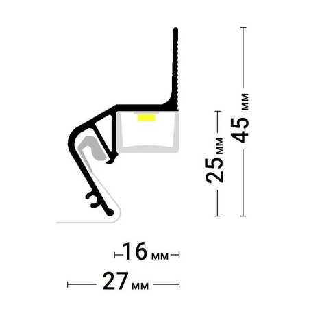 - удобство монтажа профиля и светодиодной ленты, т.к. конструкция профиля упрощает процесс монтажа как самого профиля, так и установку светодиодной подсветки, что позволяет сэкономить время и усилия при выполнении работ;
