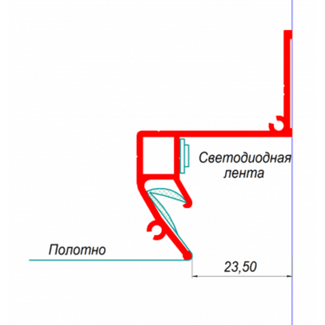 - Расстояние от стены до края профиля составляет 23,5 мм, что позволяет создать направленный вниз световой поток для равномерного освещения стены.