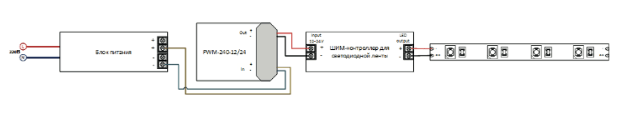 светодиодной ленты, на выходные цепи блоков питания, и снижения издаваемого ими звука при работе ШИМ-контроллера.