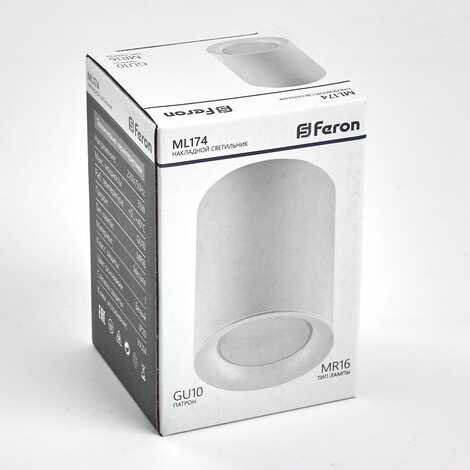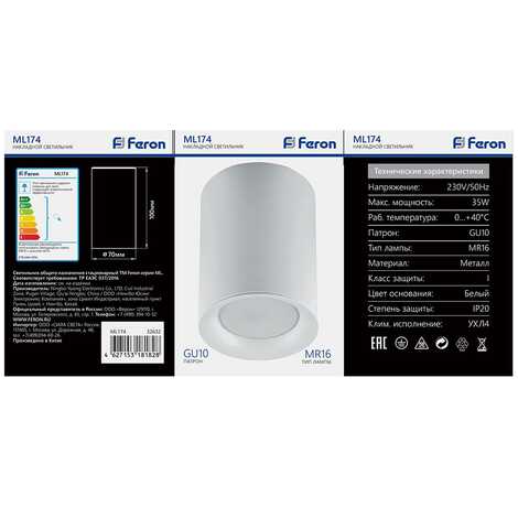Светильник накладной под лампу, спот неповоротный FERON ML174, GU10 35W, 230V, IP20, цвет белый, корпус металл, 70*70*100