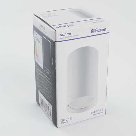 Светильник накладной под лампу, спот неповоротный (ИПО) FERON ML176, GU10 35W, 230V, IP20, цвет белый, корпус металл, 55*55*100