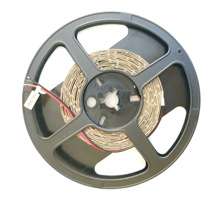LED лента теплого белого цвета свечения имеет белую подложку. На одной стороне ленты находится двухсторонний скотч, благодаря которому её легко прикрепить к чистой, предварительно обезжиренной поверхности.