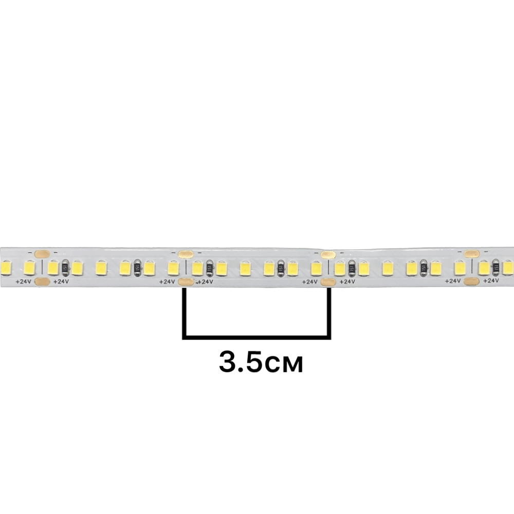 LED лента теплого белого цвета свечения имеет белую подложку. На одной стороне ленты находится двухсторонний скотч, благодаря которому её легко прикрепить к чистой, предварительно обезжиренной поверхности.