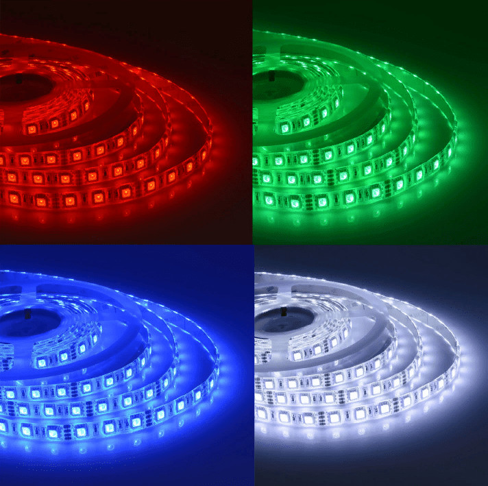 Светодиодная лента — это источник света, который представляет из себя гибкую печатную плату из диэлектрического материала (меди), толщиной не более 0,25 мм, покрытую защитным материалом , на которую равноудалено друг от друга установлены светодиоды. На плату нанесены дорожки которые проводят ток к светодиодам. С обратной стороны лента имеет самоклеящийся слой для монтажа на поверхность. Практически все светодиоды предназначены на низковольтное питание, поэтому их устанавливают в модули по 3, 6 светодиода (обычно), соединенных последовательно, а затем вся группа модулей через ограничивающий резистор подключается к блоку питания. Обычно лента наматывается в рулоны отрезками по 5м, а ее ширина от 5 до 30 мм.