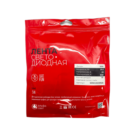Светодиодная лента ALFA 14,4 w/60 точек/RGB (24v)