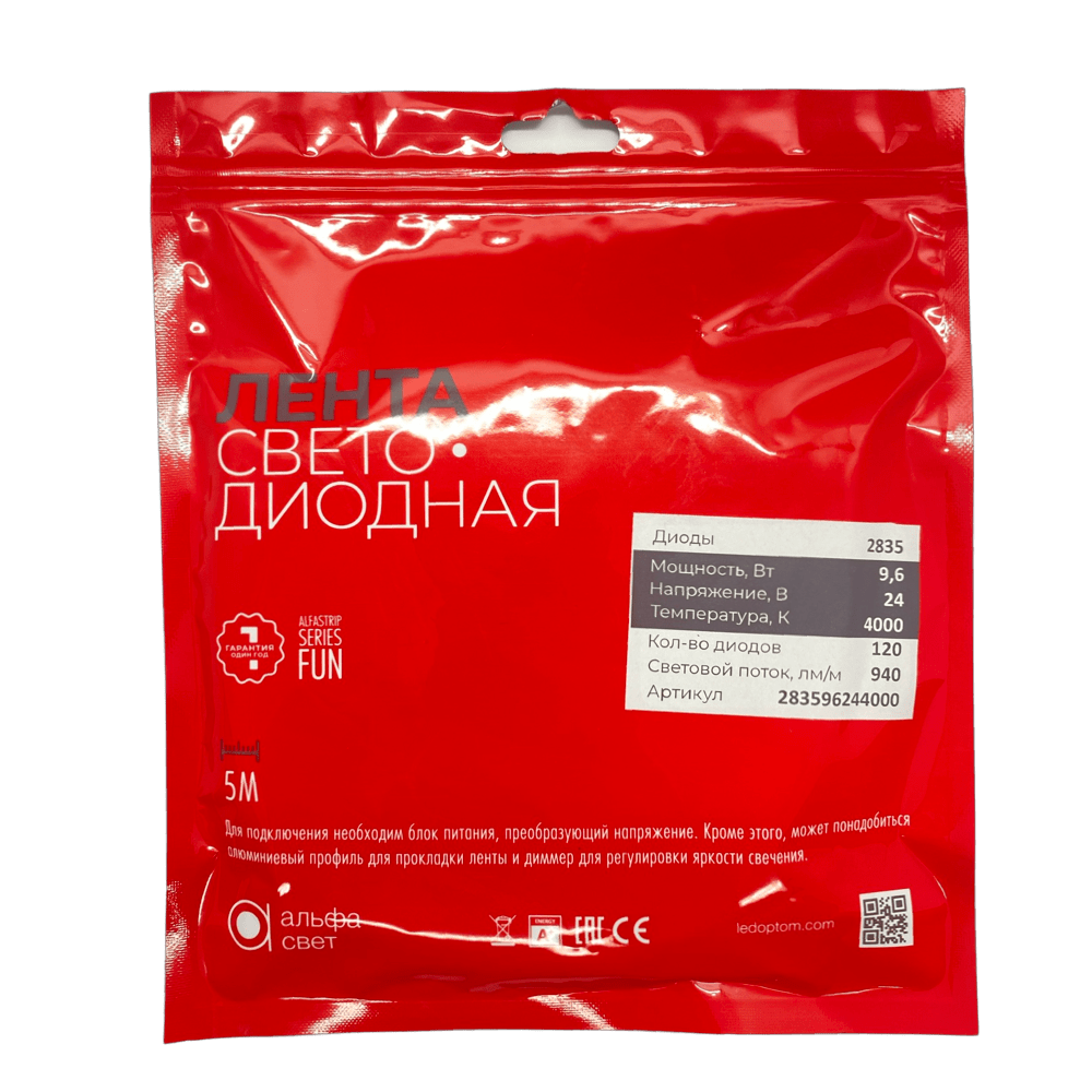 Светодиодная лента ALFA 9.6w/120 точек/4000K/940лм (24v)