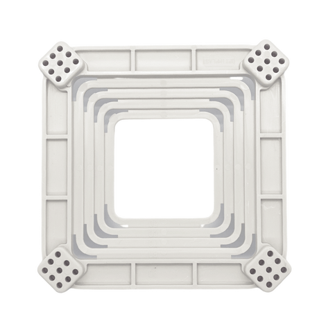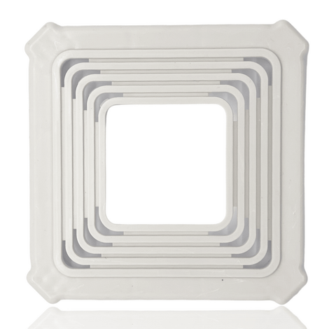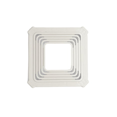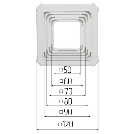 Универсальная платформа представляет собой квадрат ступенчатой формы (форма воронки) с шагом (ступенями) шириной 10 мм. Во время монтажа, выбрав квадрат нужного размера, все квадраты меньшего размера обрезаются. Кроме того, из-за своей ступенчатой структуры площадь контакта платформы с ПВХ пленкой будет минимальной. Благодаря этому, используя даже самое тонкое полотно, универсальная платформа для встроенного светильника не будет видна.