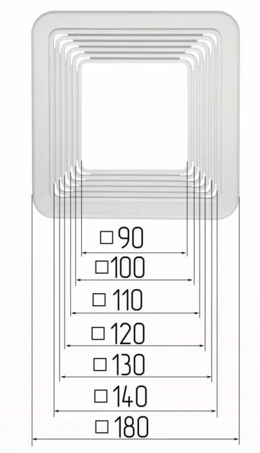 Универсальная квадратная платформа 90-140 мм., для монтажа точечных светильников квадратного сечения разных размеров. Универсальная конструкция данной платформы позволяет устанавливать светильники посадочным размером от 90 мм. до 140 мм., шаг - 10 мм.