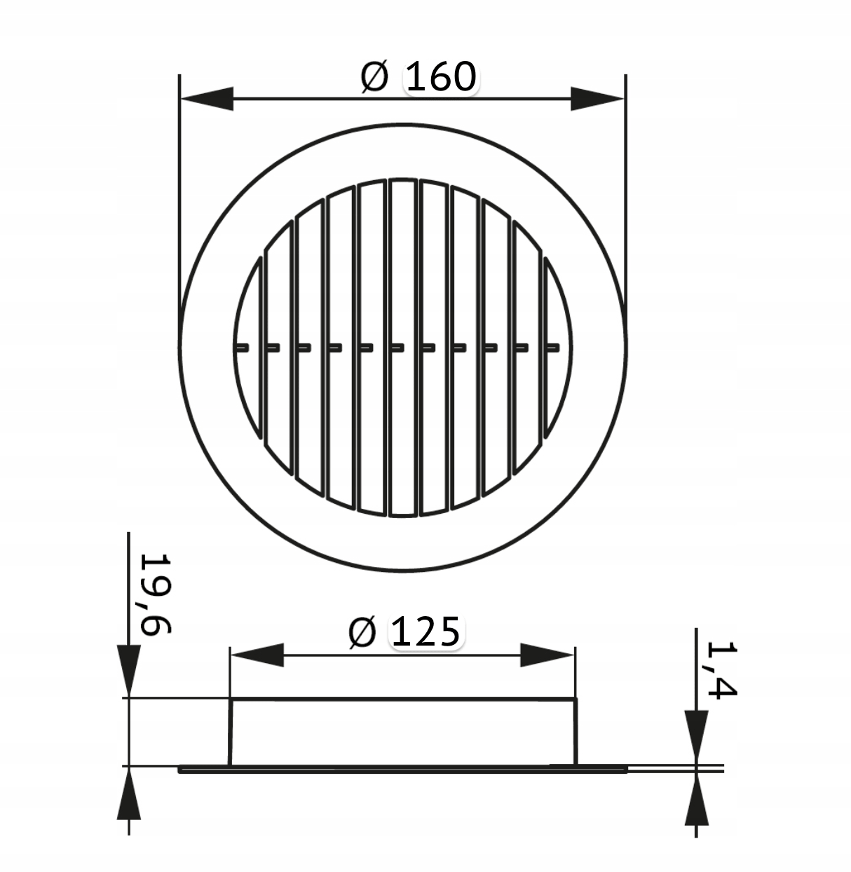 - Размер изделия, мм D = 160, d = 125, H = 29